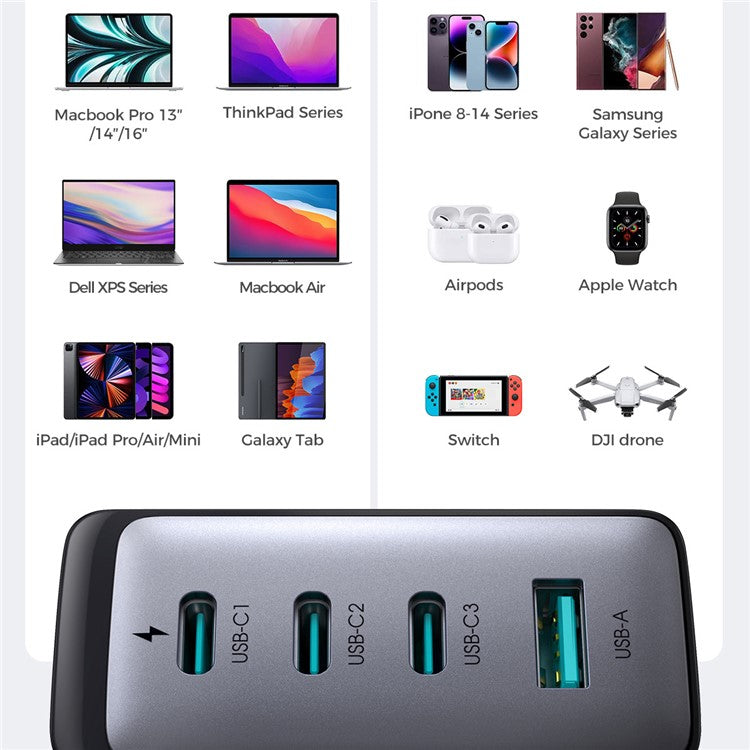 - USB-C1+C2+USB-A Output: 45W+30W+22.5W