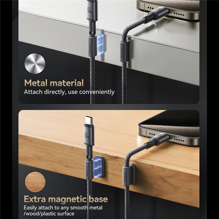 JOYROOM S-A50 1.2m Type-C to Type-C 60W Fast Charging Data Cable with Magnetic Cable Holder for iPhone 16-15 Series - Dark Grey
