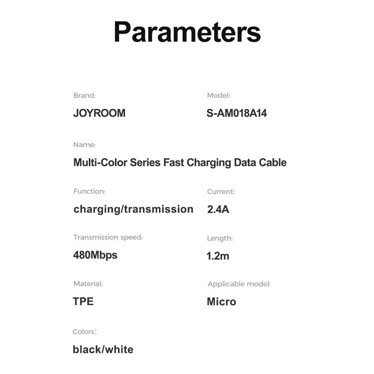 JOYROOM S-AM018A14 Multi-Color Series 1.2m 2.4A USB-A to Micro Cable TPE Fast Charging Data Cord - White
