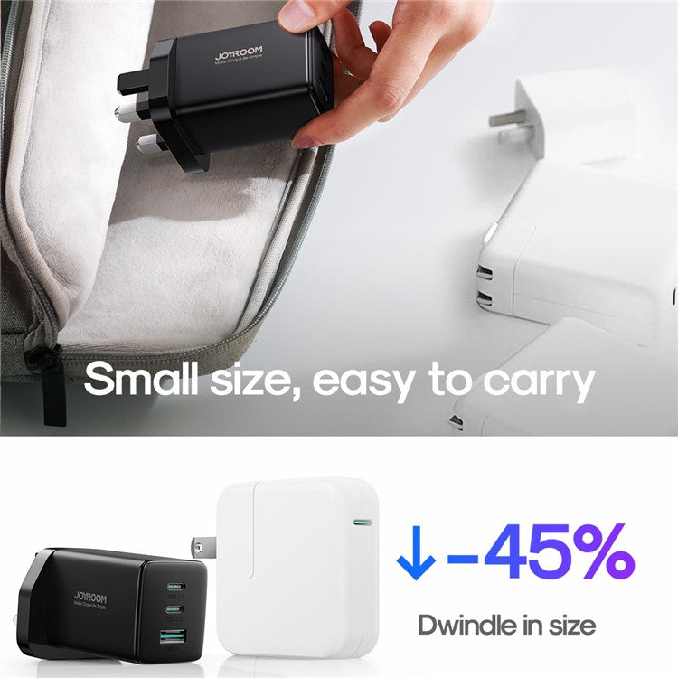 JOYROOM TCG01 65W GaN Ultra Fast Charger for iPhone 16-15 Series 2USB-C+1USB-A Wall Charger Kit with 100W 1.2m Type-C to Type-C Cable, Black (UK Plug)