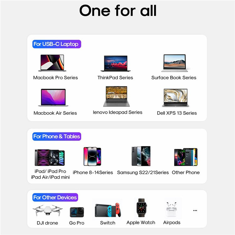 - Compatible with kinds of devices, such as laptops, cell phones, tablets, etc.