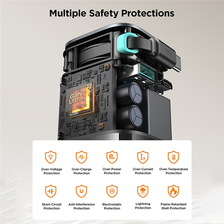JOYROOM TCL02 65W Gan Charger with Retractable USB-C Cable, USB+Type-C Port Wall Charger, EU Plug