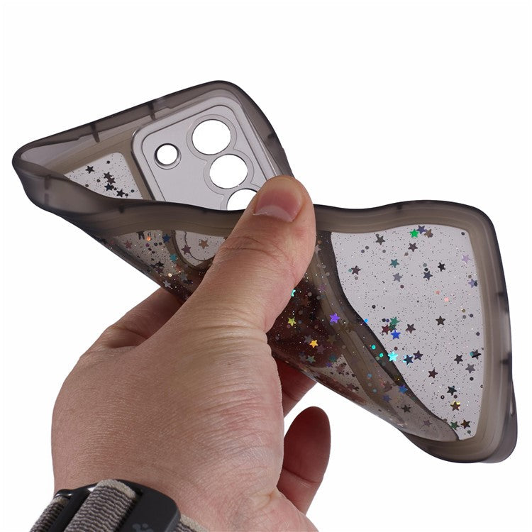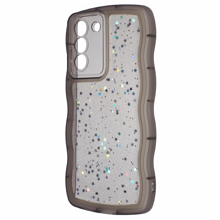 JTW Series for Samsung Galaxy S21 FE 5G Case Wave Frame Curly Shape TPU Epoxy Phone Cover - Transparent Black