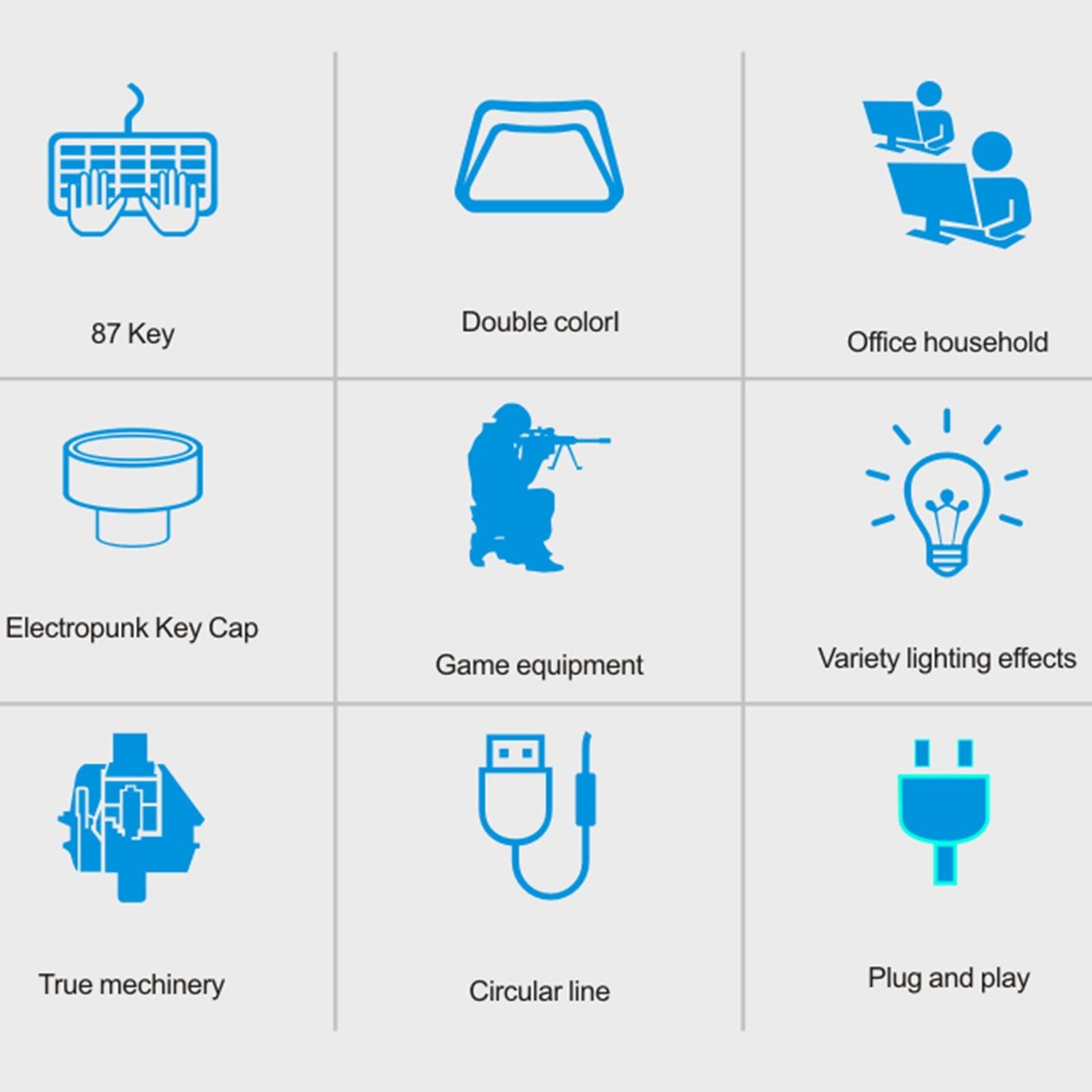 K550 Mechanical Gaming Keyboard 87Key Wired Game Keyboard RGB Backlit Black