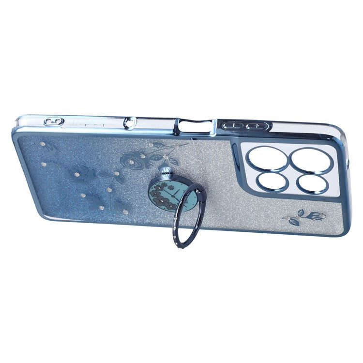 KADEM For Motorola Moto G75 5G Case Ring Kickstand TPU Flowers Phone Cover Gradient Glitter - Blue