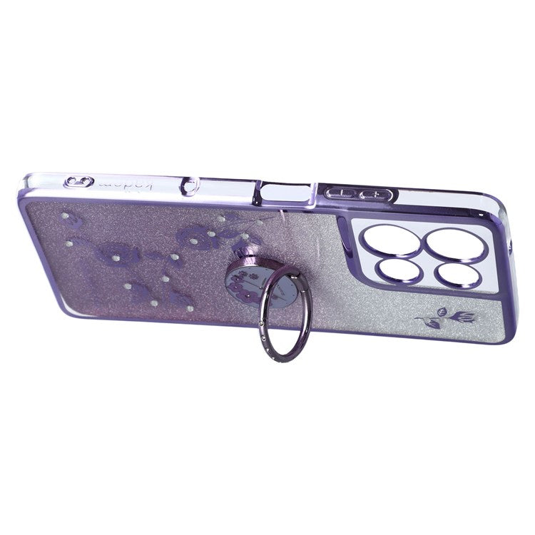 KADEM For Motorola Moto G75 5G Case Ring Kickstand TPU Flowers Phone Cover Gradient Glitter - Purple