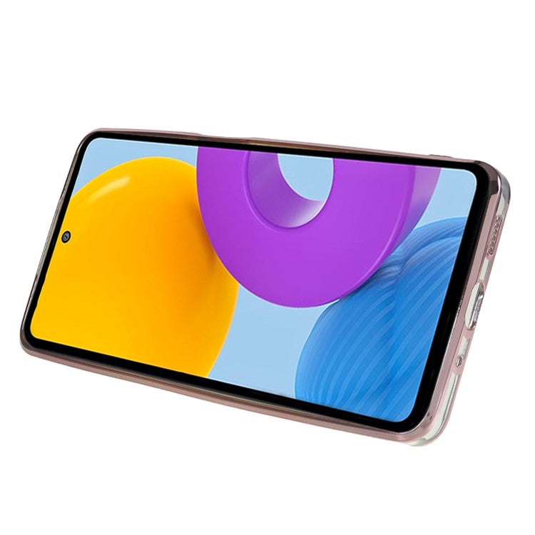 KADEM For Samsung Galaxy M52 5G Clear TPU Phone Case Electroplated Rhinestone Flower Cover with Ring Kickstand - Rose Gold
