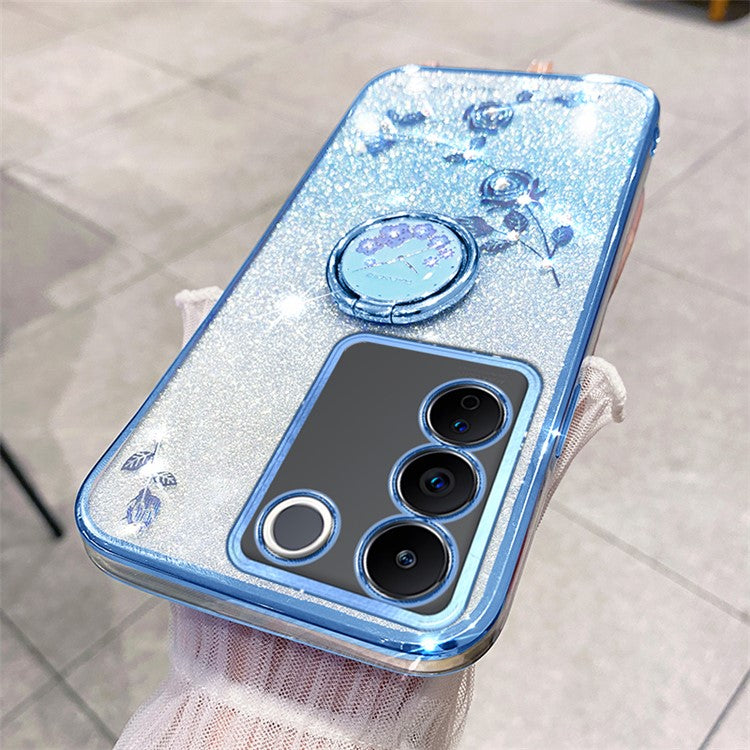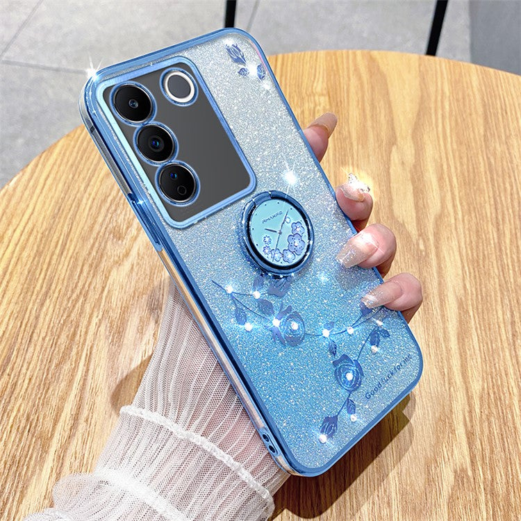 KADEM For vivo V29e (Global) 5G / Y200 4G Cell Phone Case Ring Kickstand Glitter TPU Cover - Blue