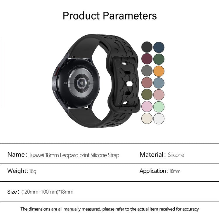 KALEBOL 18mm Silicone Strap for Huawei Watch GT 4 41mm / Garmin Venu 3S Leopard Texture Watch Band - Dark Green