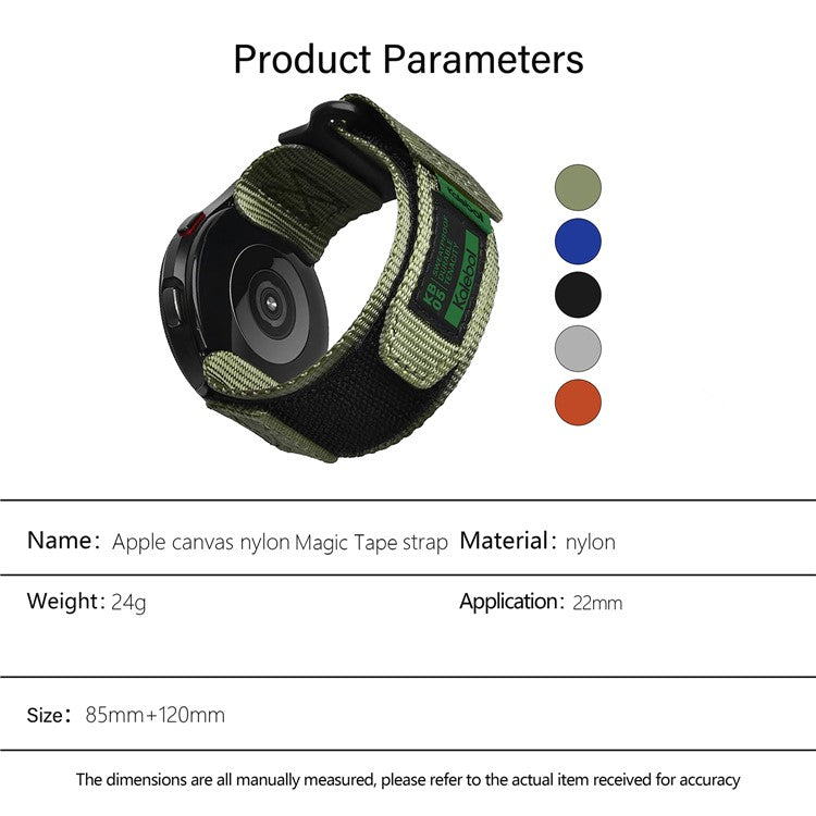 KALEBOL 22mm Nylon Watch Strap for Samsung Galaxy Watch3 45mm / Huawei Watch GT 5 46mm / GT 5 Pro 46mm Wrist Band with Magic Tape - Blue
