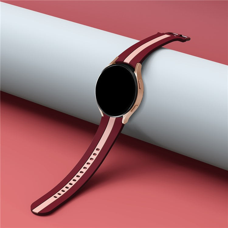 KALEBOL For Samsung Galaxy Watch FE 40mm / Watch6 / Watch6 Classic / Watch 5 / Watch 5 Pro Watch Strap Dual Color Silicone Band - Wine Red+Pink