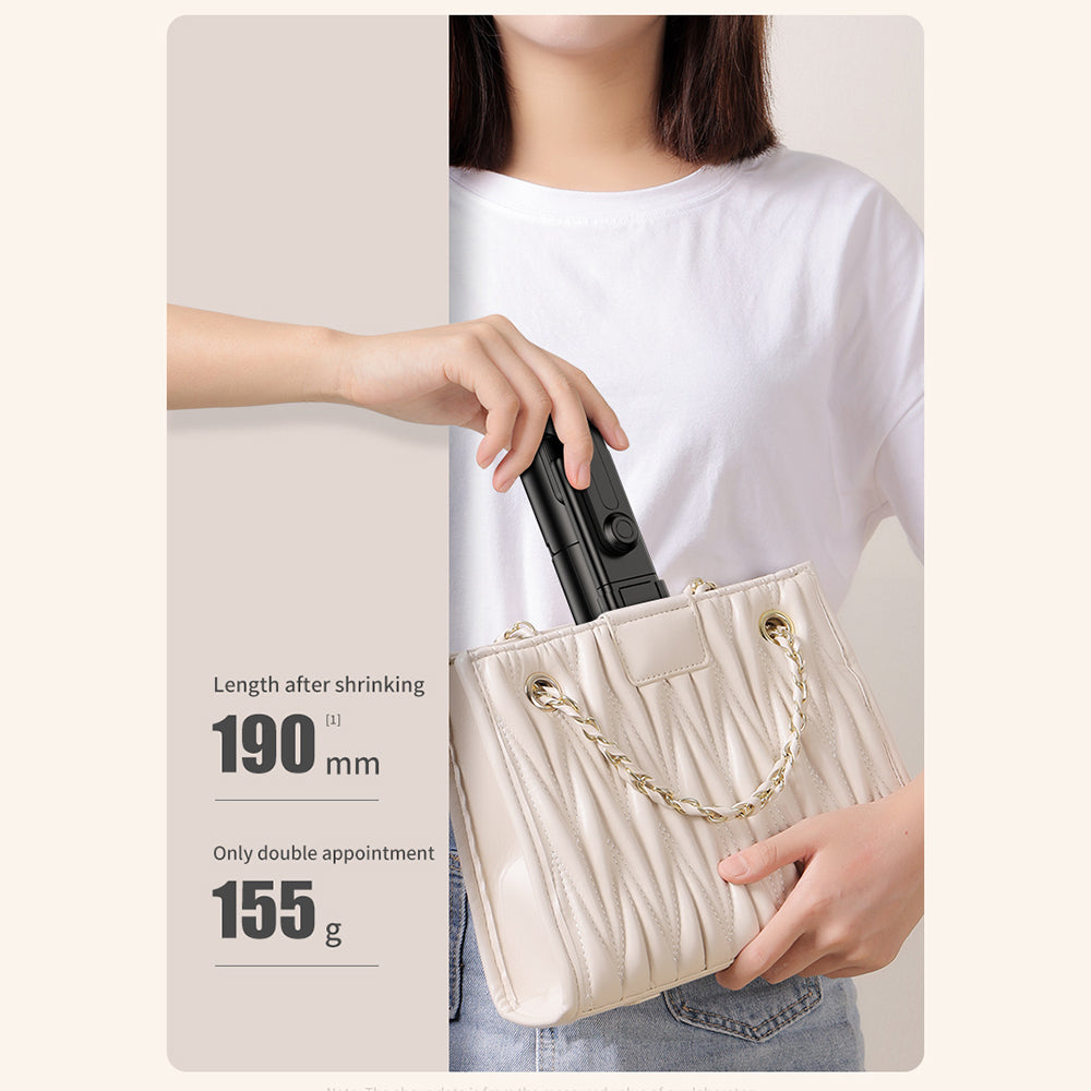 This portable selfie stick is made of premium ABS and stainless steel