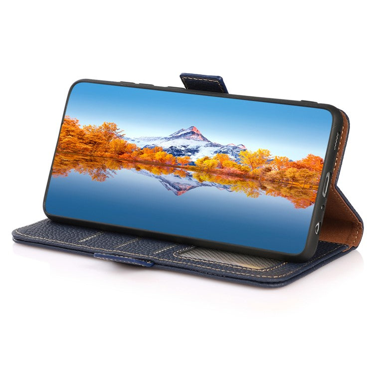 KHAZNEH For Asus ROG Phone 7 5G Wallet Case with RFID Blocking Genuine Cow Leather Stand Phone Cover - Blue
