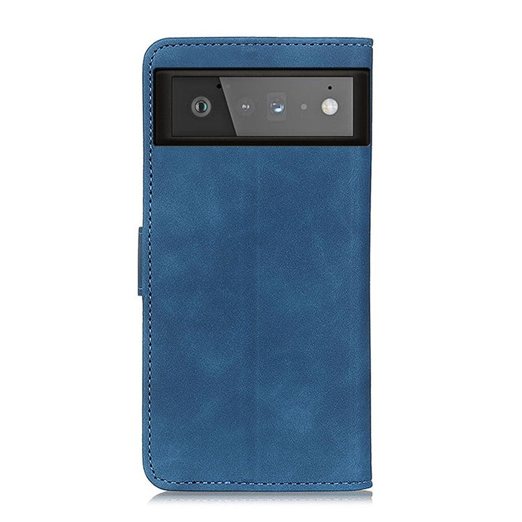 KHAZNEH for Google Pixel 6 PU Leather Phone Case Vintage Style Wallet Stand Flip Cover - Blue