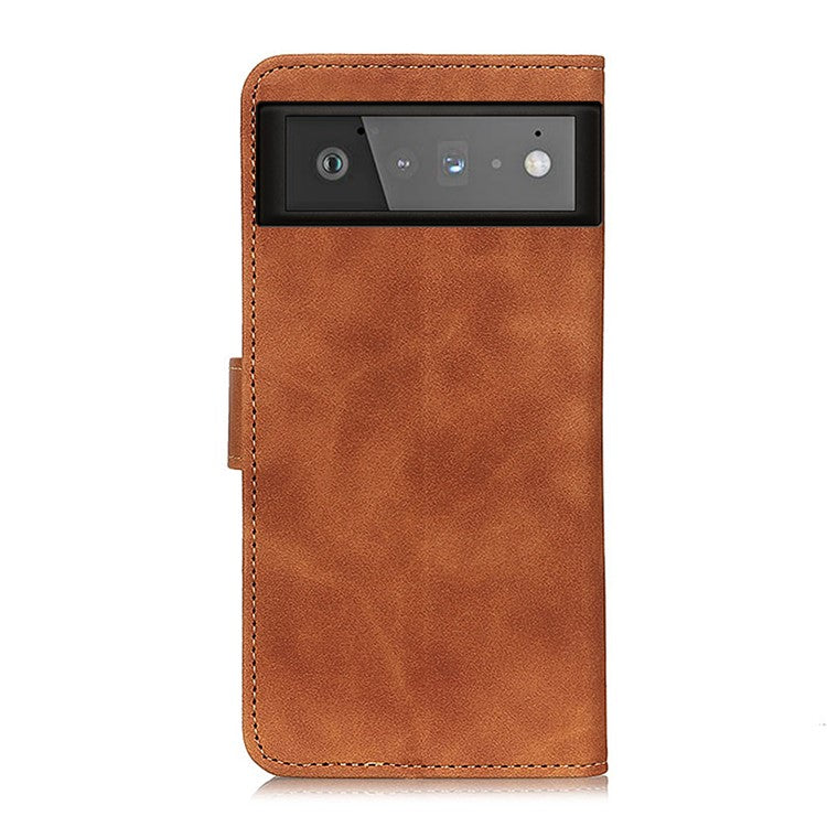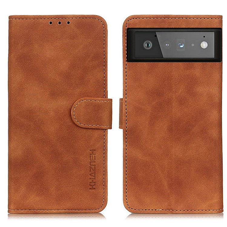 KHAZNEH for Google Pixel 6 PU Leather Phone Case Vintage Style Wallet Stand Flip Cover - Brown