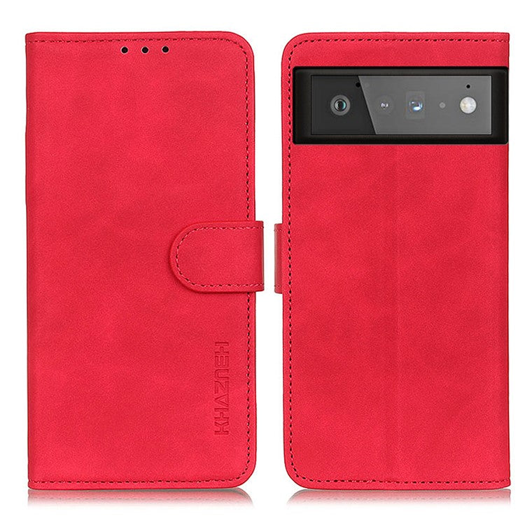KHAZNEH for Google Pixel 6 PU Leather Phone Case Vintage Style Wallet Stand Flip Cover - Red