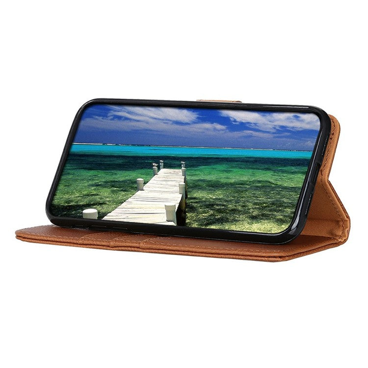 KHAZNEH For Google Pixel 9a Wallet Case Cowhide Texture Leather Flip Phone Cover - Brown