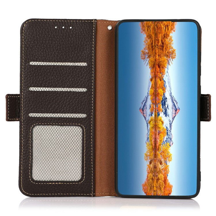 KHAZNEH For Motorola Moto G15 4G / G05 4G Phone Case Genuine Cow Leather Cover RFID Blocking - Brown