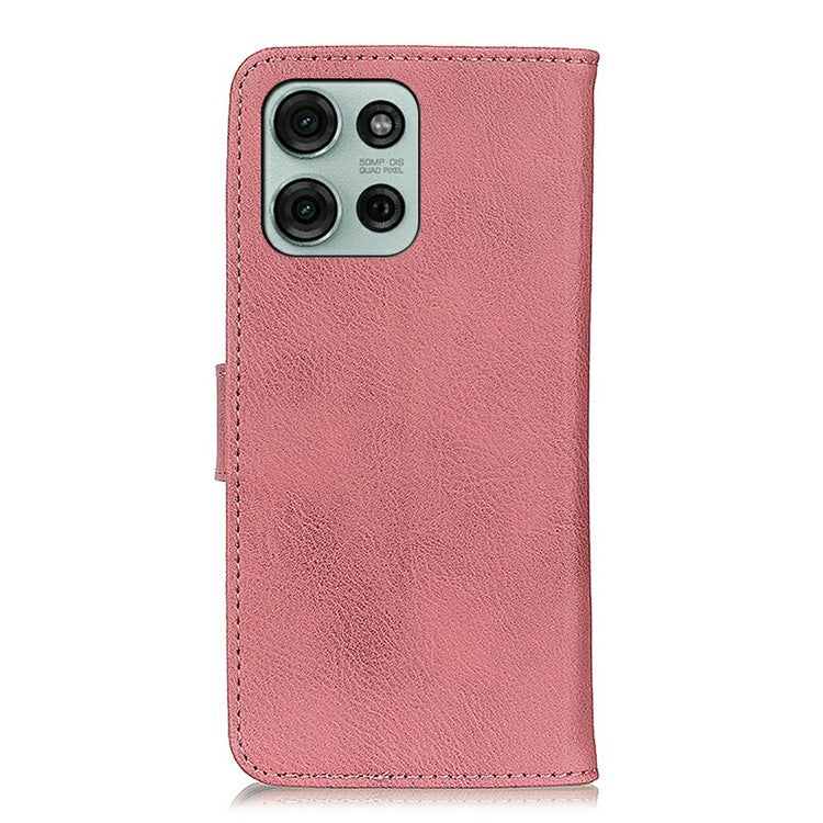 KHAZNEH For Motorola Moto G75 5G Wallet Case Cowhide Texture Leather Flip Phone Cover - Pink
