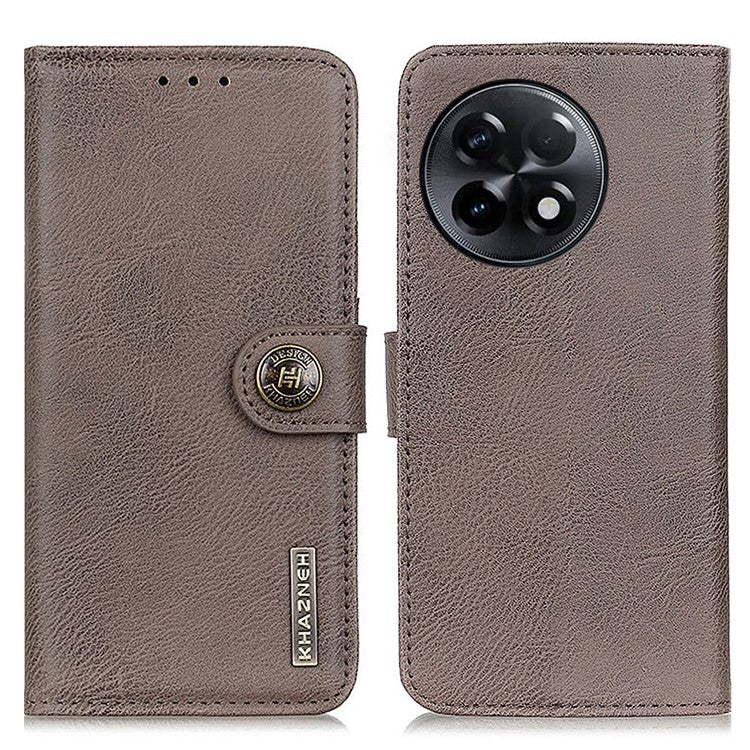 KHAZNEH For OnePlus Ace 2 5G / 11R 5G Cowhide Texture Leather Phone Case Anti-shock Flip Cover Wallet Stand - Khaki