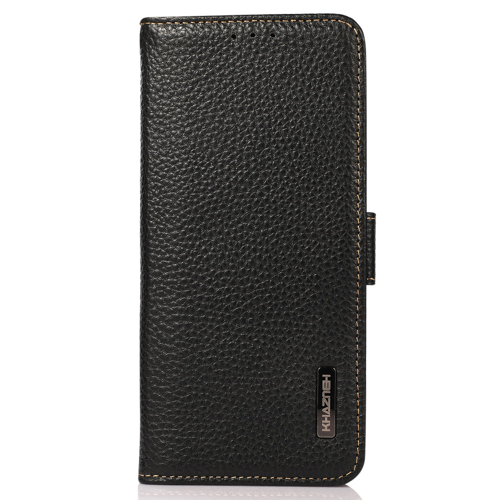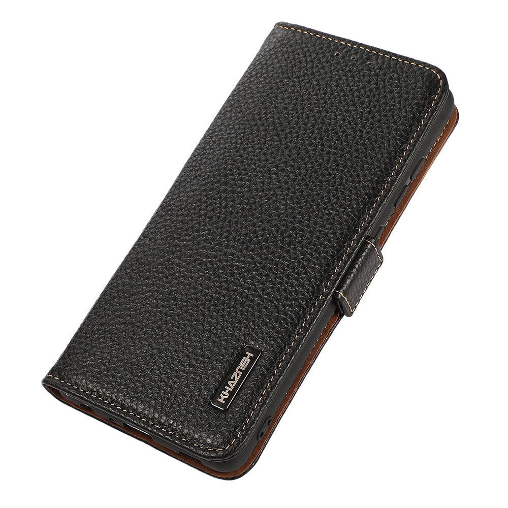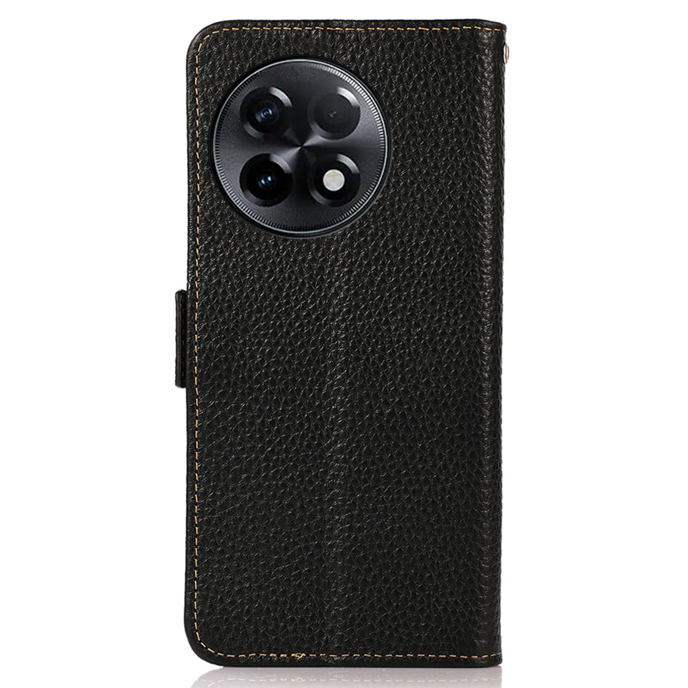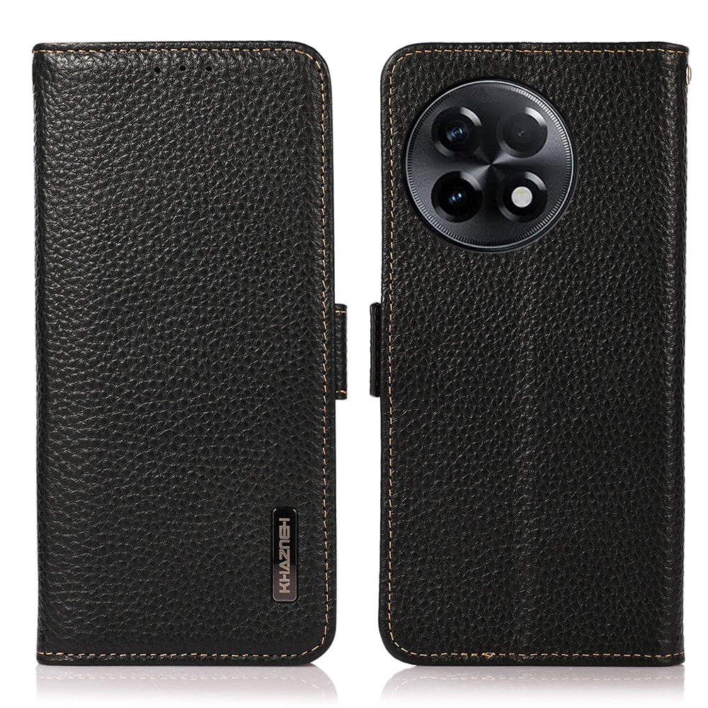 KHAZNEH For OnePlus Ace 2 5G / 11R 5G Stand Wallet Phone Case RFID Blocking Genuine Cow Leather Protective Cover - Black