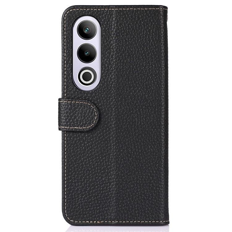 KHAZNEH For OnePlus Nord CE4 5G Phone Stand Case Support Stand Genuine Cow Leather Phone Cover - Black