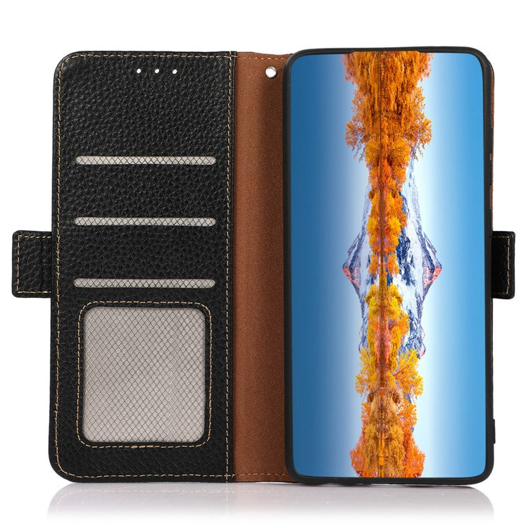 KHAZNEH For OnePlus Nord CE4 5G RFID Blocking Case Genuine Cow Leather Phone Cover - Black