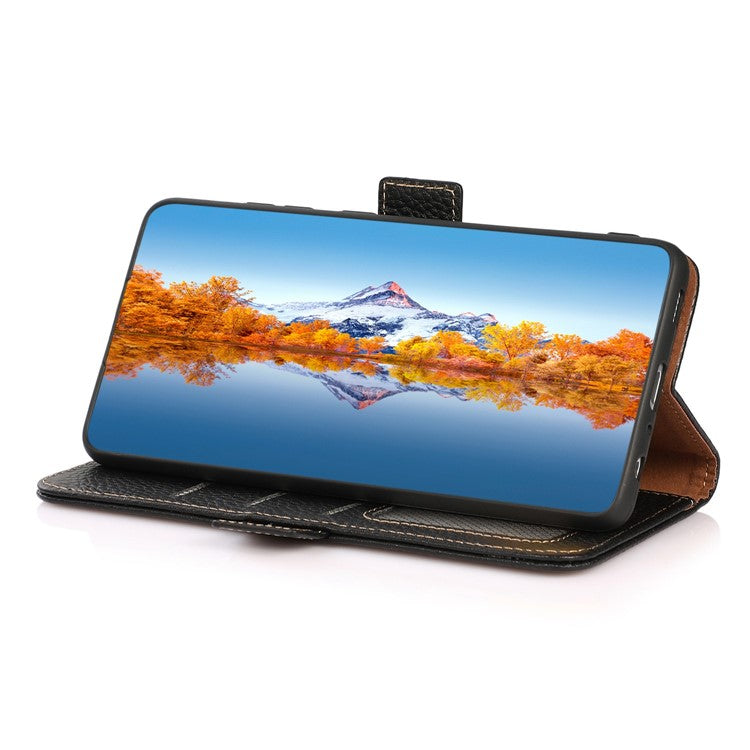 KHAZNEH For Samsung Galaxy M35 5G Phone Case Genuine Cow Leather Cover RFID Blocking - Black
