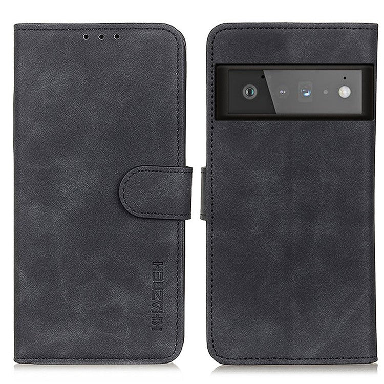 KHAZNEH Vintage Style Leather Wallet Stand Case for Google Pixel 6 Pro - Black