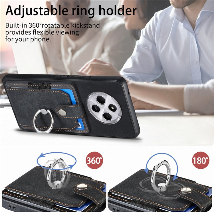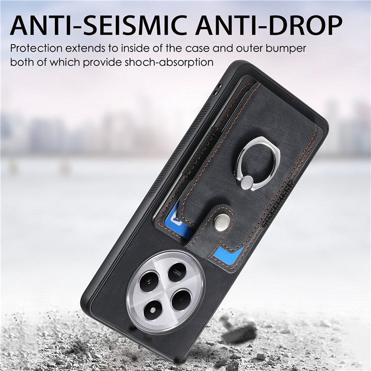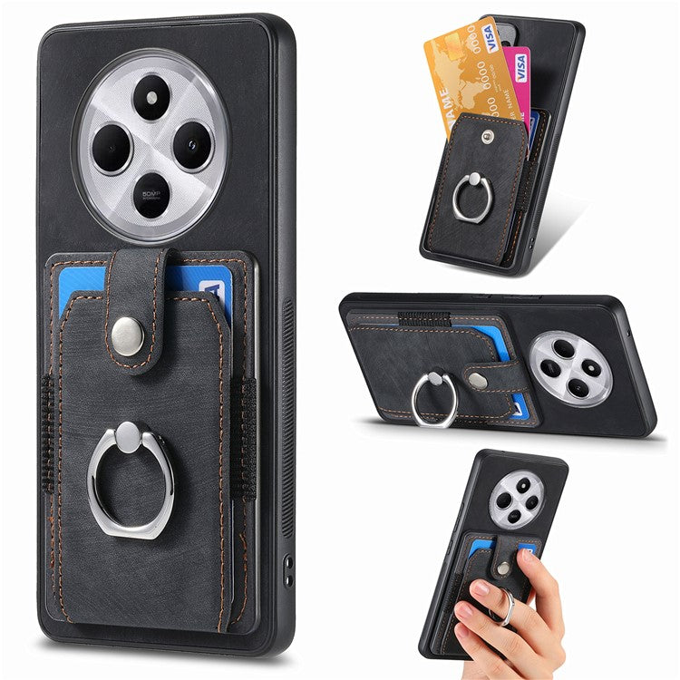 Kickstand Phone Case For Xiaomi Redmi 14C 4G / 14R 5G / Poco C75 4G Leather+TPU Non-Slip Protective Cover Card Slots - Black