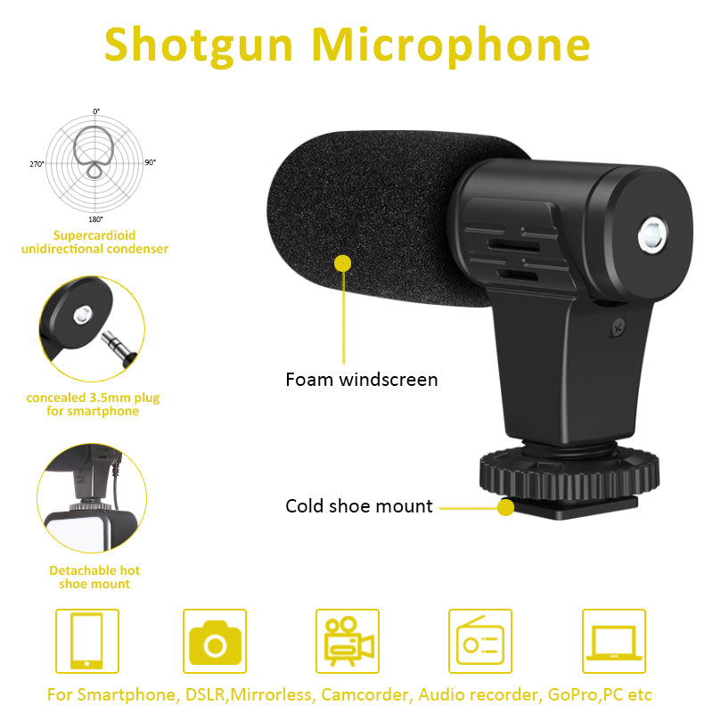 Microphone: Foam windshield, suitable for smartphones, SLR cameras, camcorders, voice recorders, for Gopro, PCs, etc.