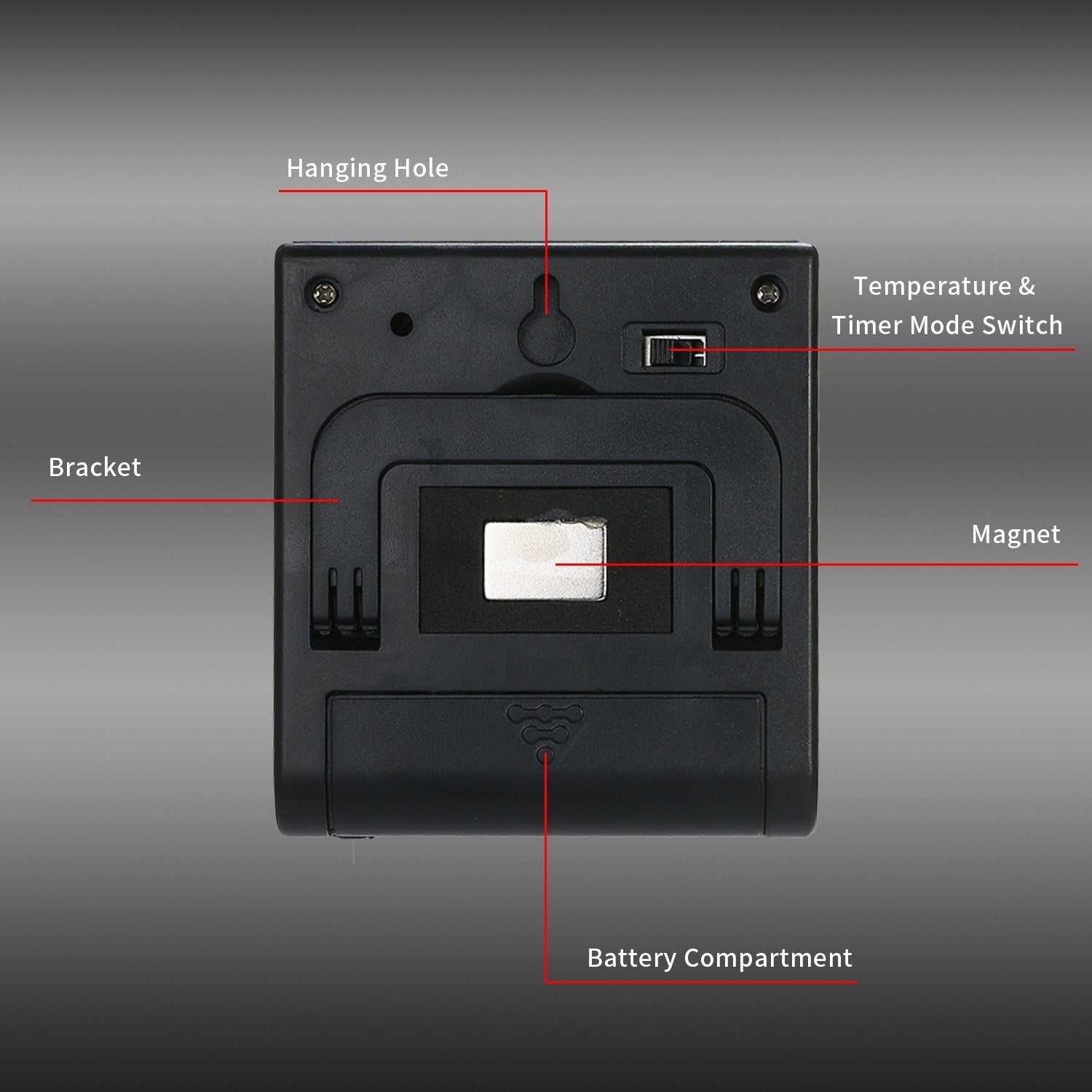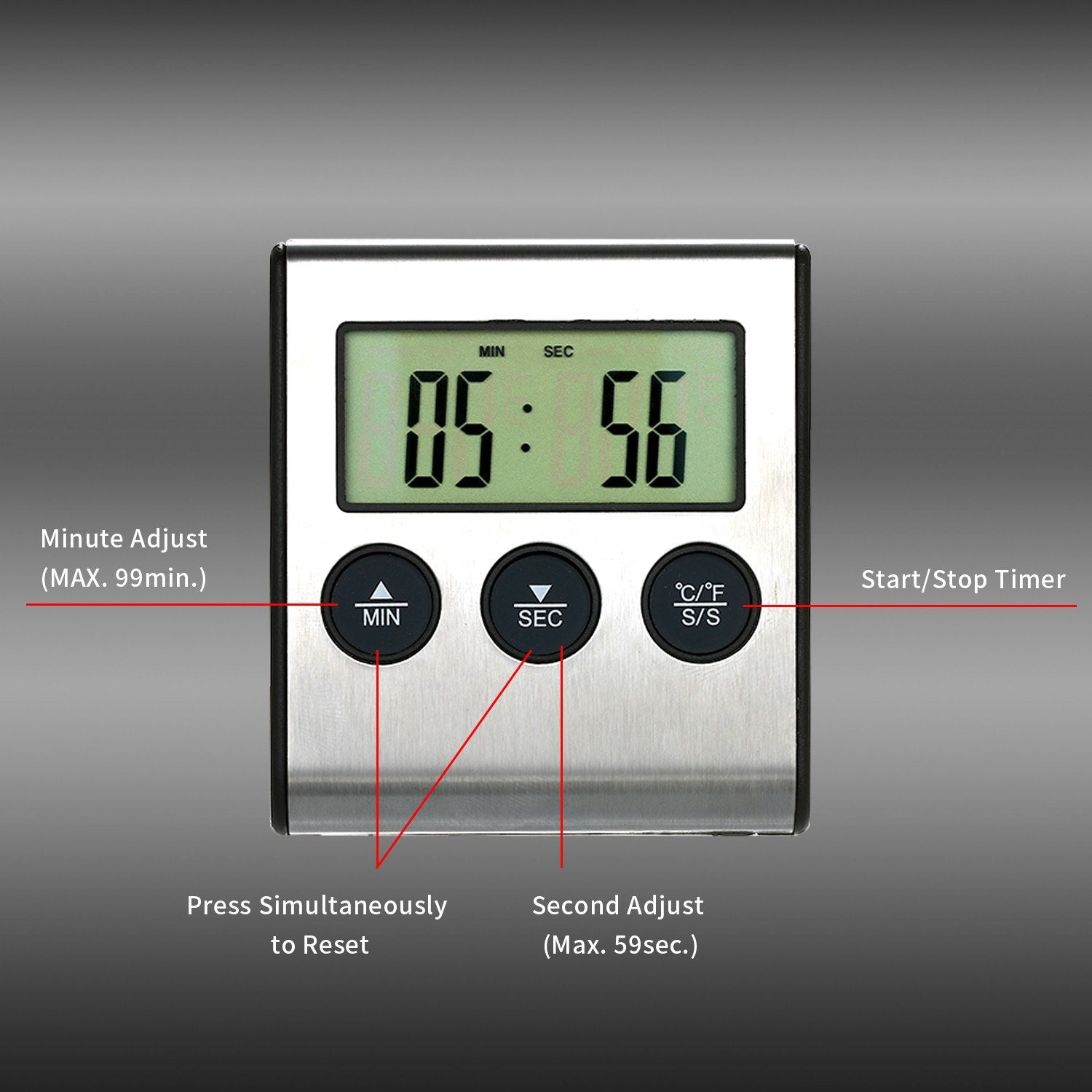 Wide measuring range from 0? to 250? (32~482?), the temperature in °C/? switchable. Cook and Timer mode switchable, easy to set the alarm temperature and the countdown time as demand.