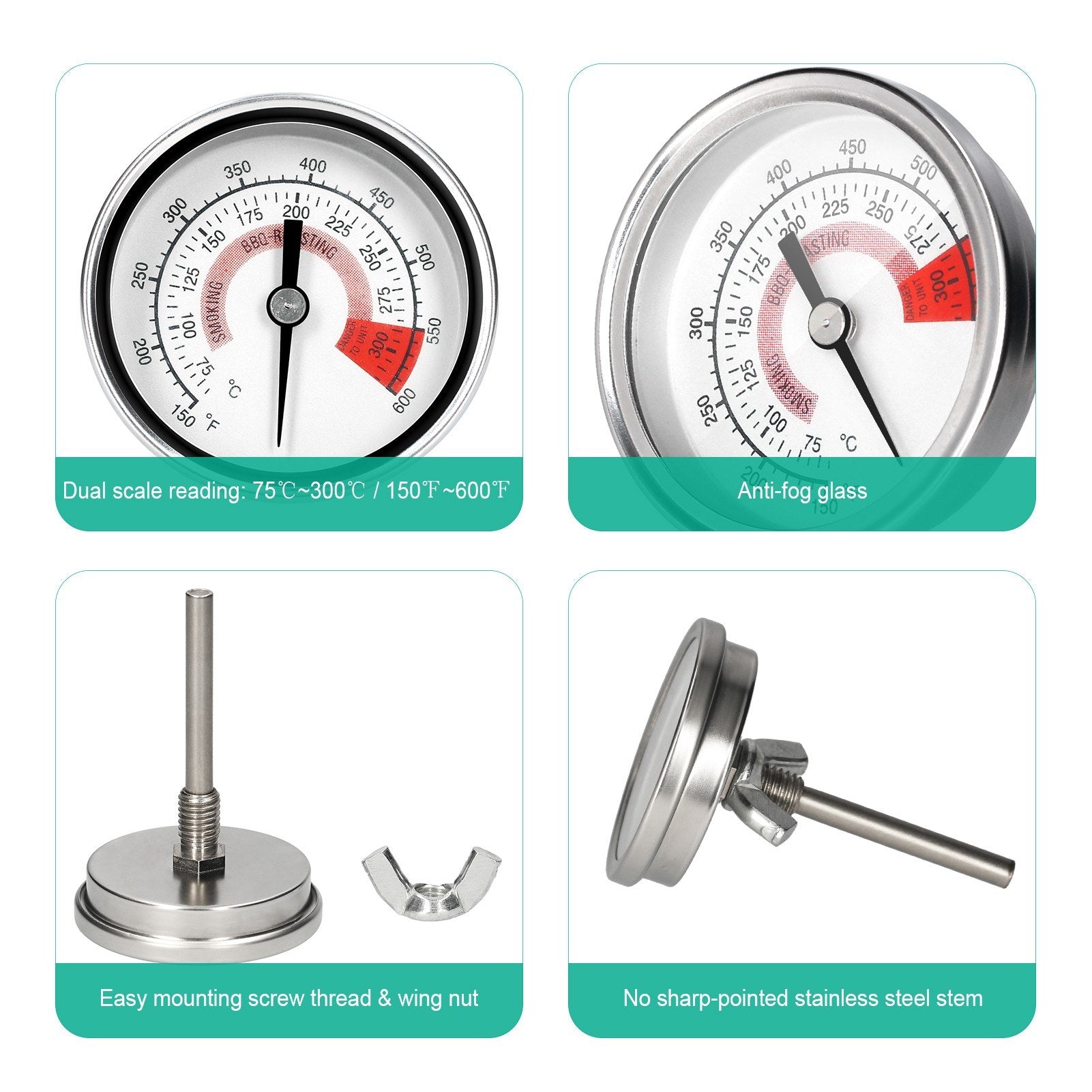 - Accurate thermometer gauge with anti-fog glass. Read the temperature easily through the dial