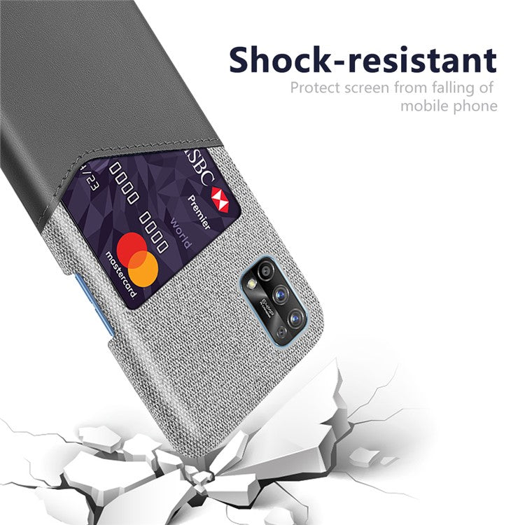 KSQ Card Holder Cloth + PU Leather Coated PC Back Cover for Realme 7 Pro - Grey