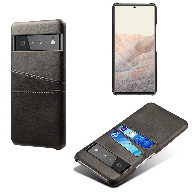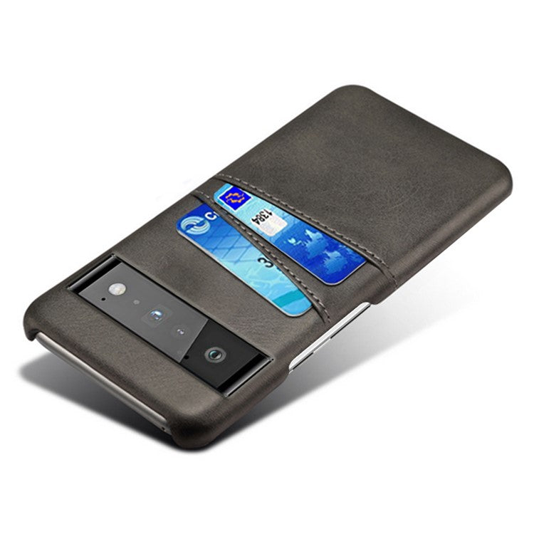 KSQ PU Leather + PC Combo Stylish Dual Back Card Slots Design Light Slim Hard Case for Google Pixel 6 Pro - Black