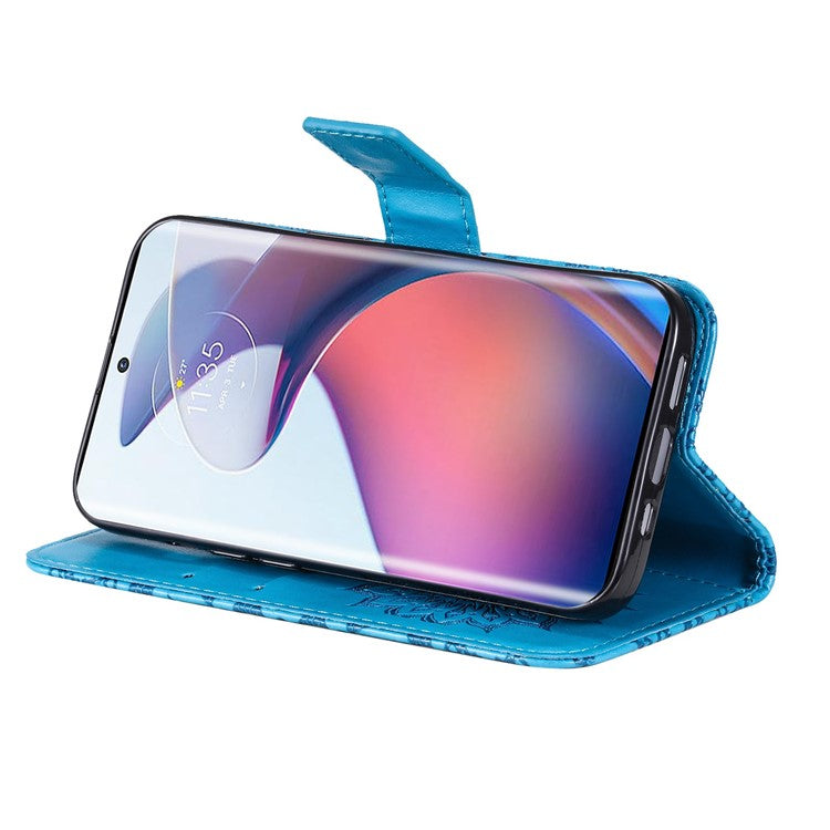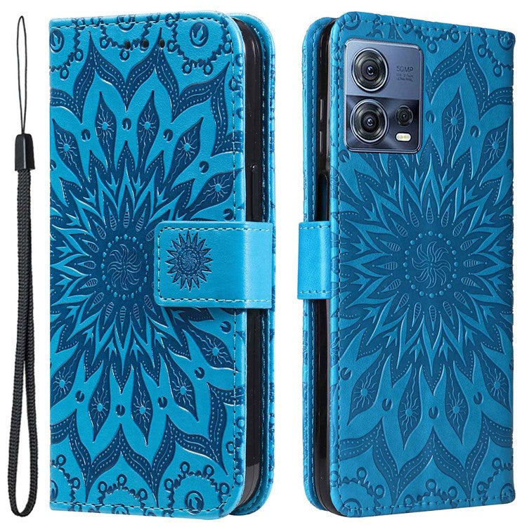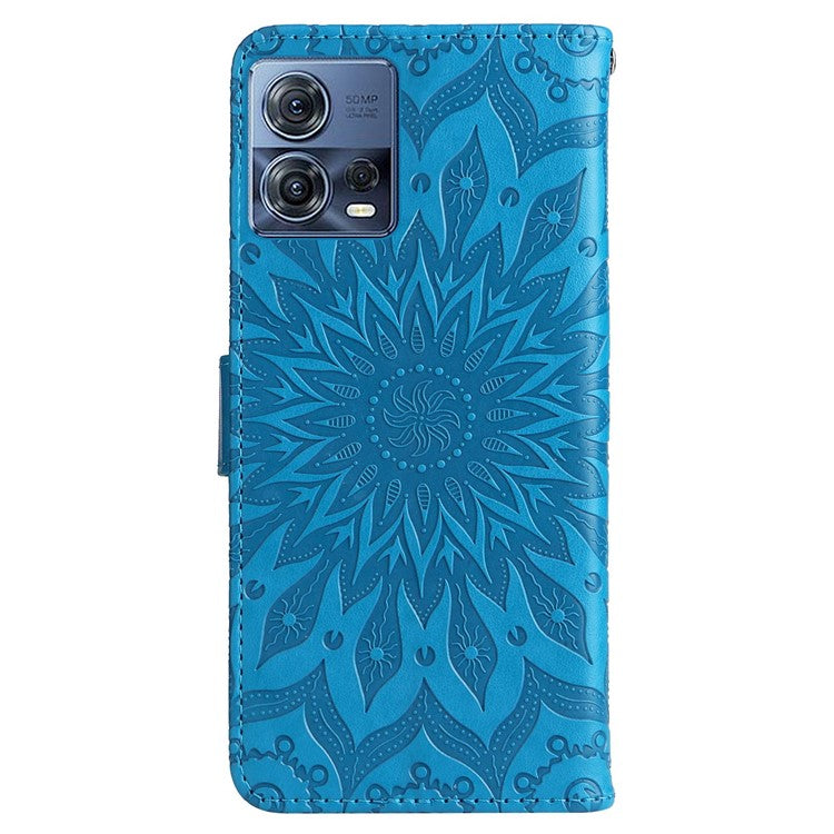 KT Imprinting Flower Series-1 for Motorola Edge 30 Fusion 5G / Moto S30 Pro 5G PU Leather Shockproof Case Sunflower Imprinted Stand Phone Wallet Cover - Blue