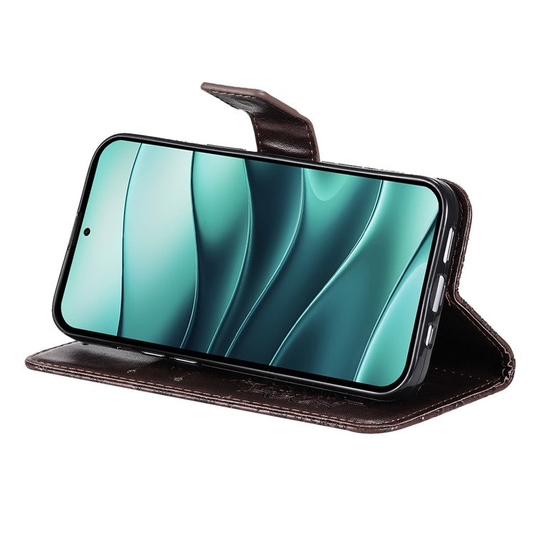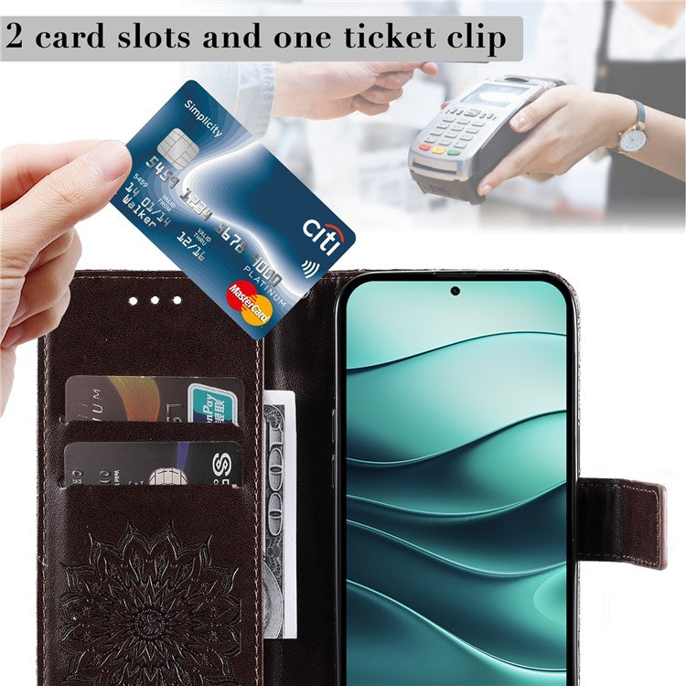 KT Imprinting Flower Series-1 For Xiaomi Redmi Note 14 5G Case Sunflower Leather Wallet Phone Cover - Brown