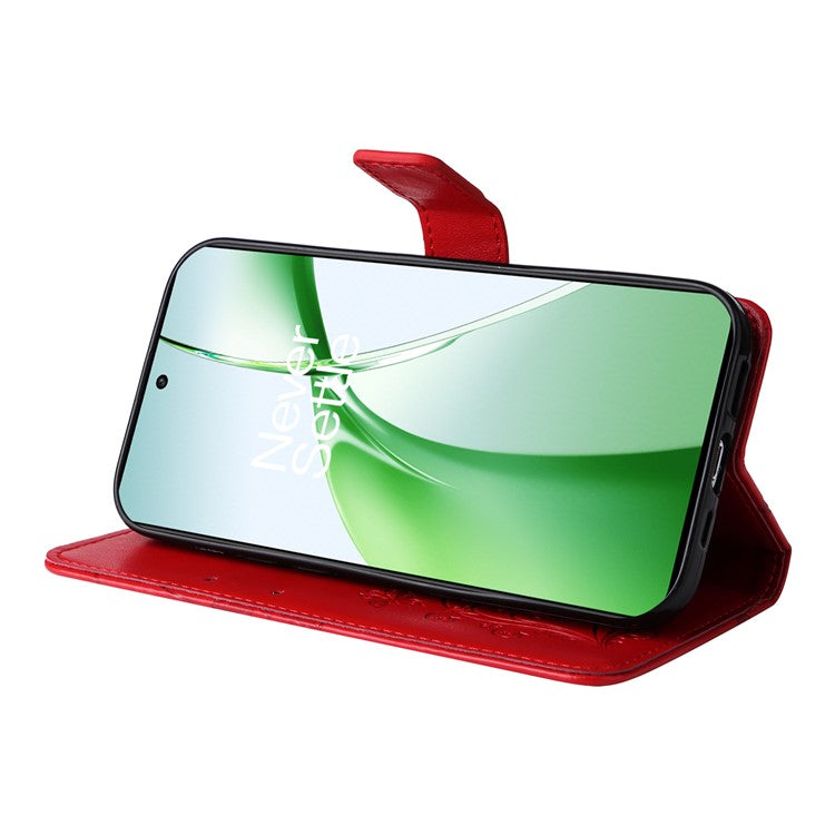 KT Imprinting Flower Series-2 For OnePlus Nord CE4 5G Case Leather Cover with Wallet Stand - Red
