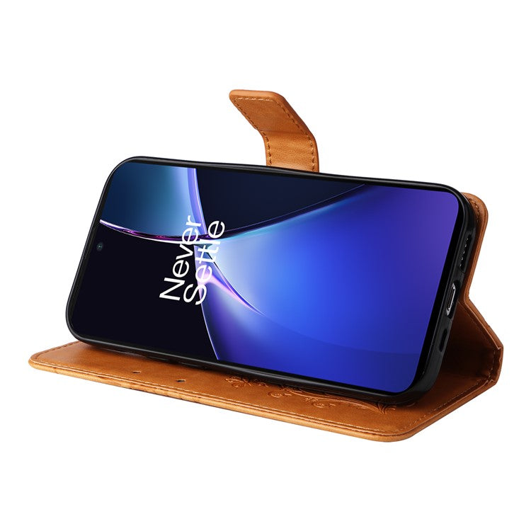 KT Imprinting Flower Series-2 For OnePlus Nord CE4 Lite 5G / Oppo K12x 5G (China) Case Floral Butterfly Leather Phone Cover Card Holder - Yellow
