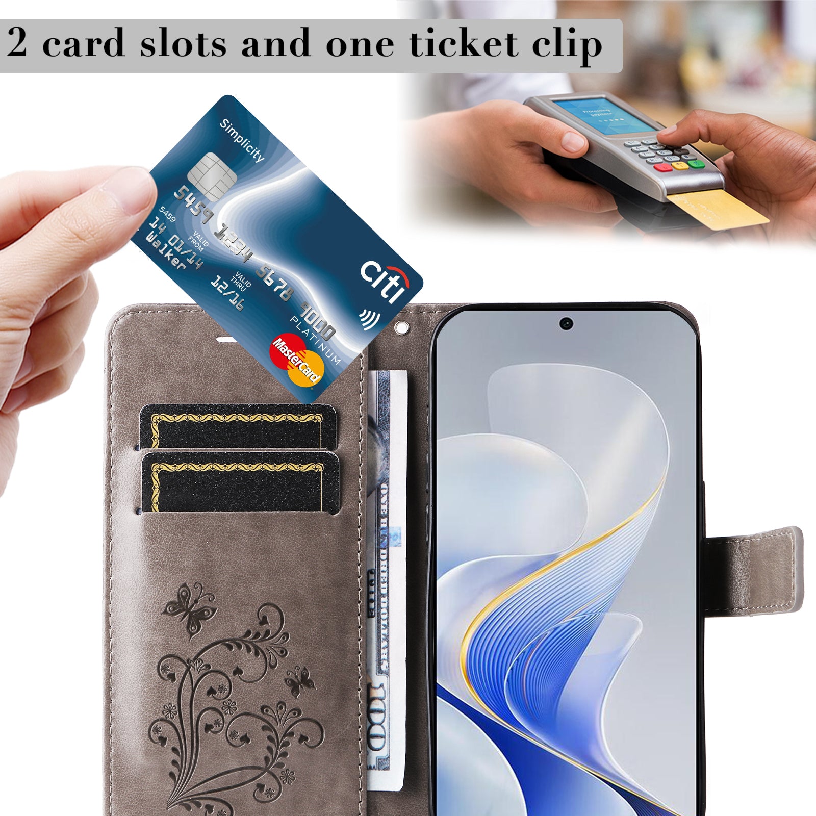 KT Imprinting Flower Series-2 For vivo S19 5G / V40 5G Case Stand Wallet Leather Phone Cover - Grey