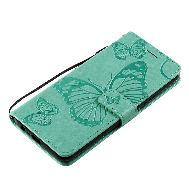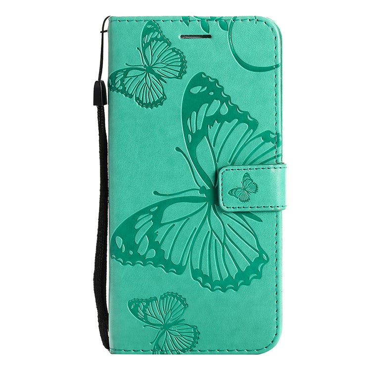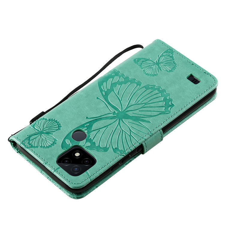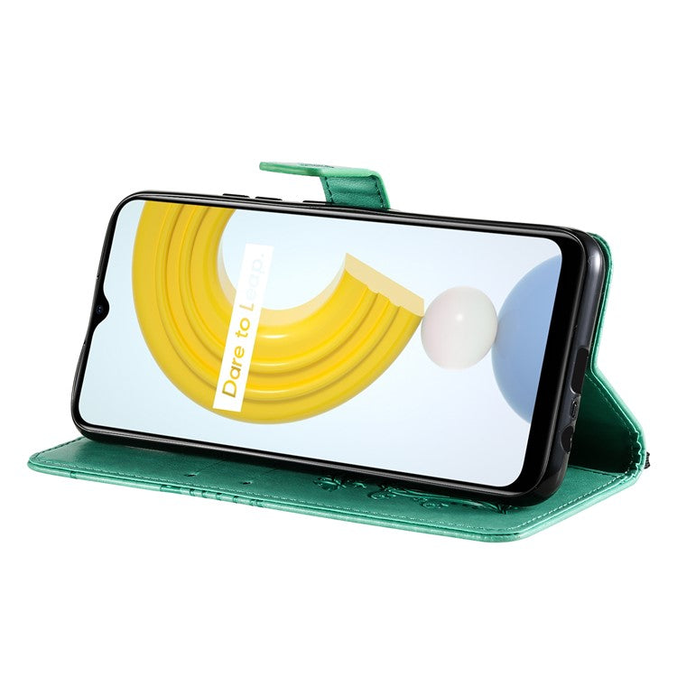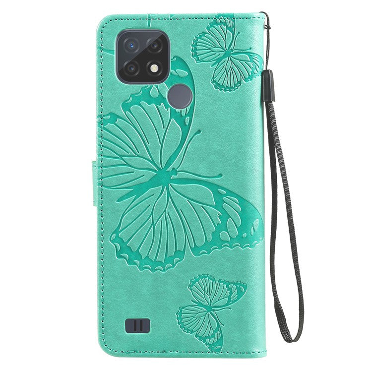 KT Imprinting Flower Series-2 Imprint Butterflies Wallet Stand Leather Flip Cover Protective Case with Handy Strap for Realme C21 - Green