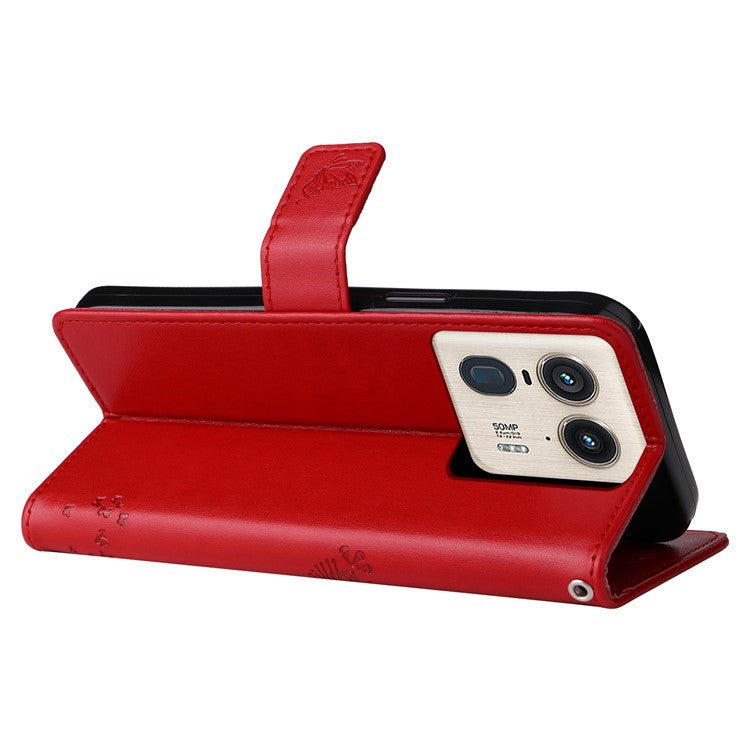 KT Imprinting Flower Series-3 For Motorola Moto X50 Ultra 5G / Edge 50 Ultra 5G Case Imprinted Wallet Leather Phone Cover - Red