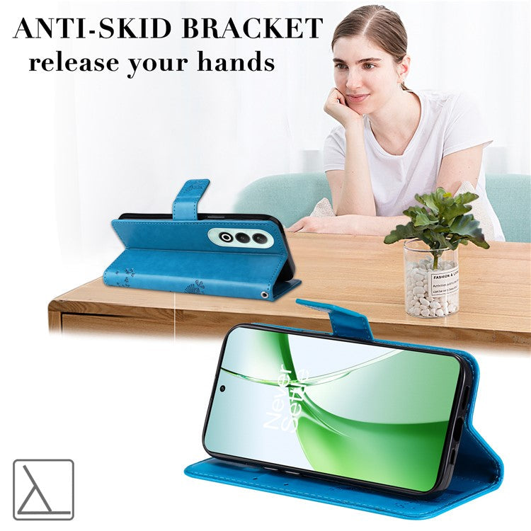 KT Imprinting Flower Series-3 For OnePlus Nord CE4 5G Wallet Case Tree Pattern Leather Phone Stand Cover - Blue