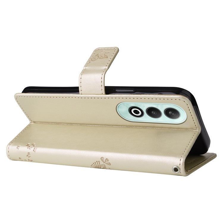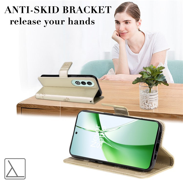 KT Imprinting Flower Series-3 For OnePlus Nord CE4 5G Wallet Case Tree Pattern Leather Phone Stand Cover - Gold