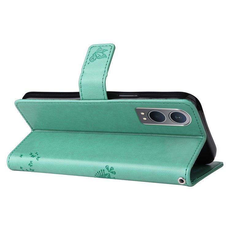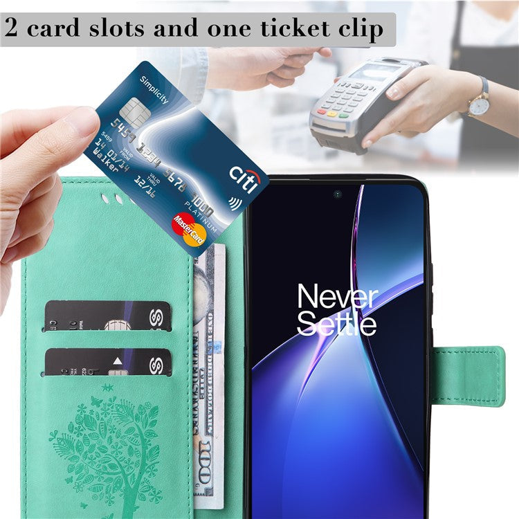 KT Imprinting Flower Series-3 For OnePlus Nord CE4 Lite 5G / Oppo K12x 5G (China) Case Wallet Leather Cat Tree Pattern Phone Cover - Green