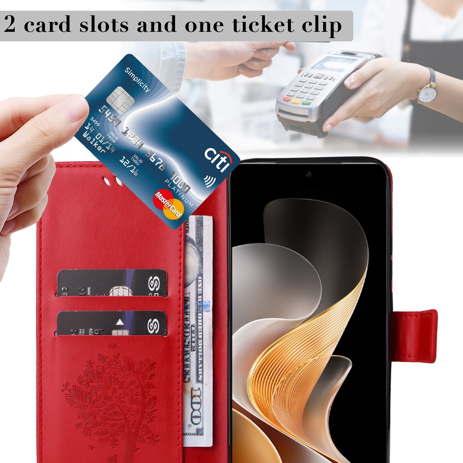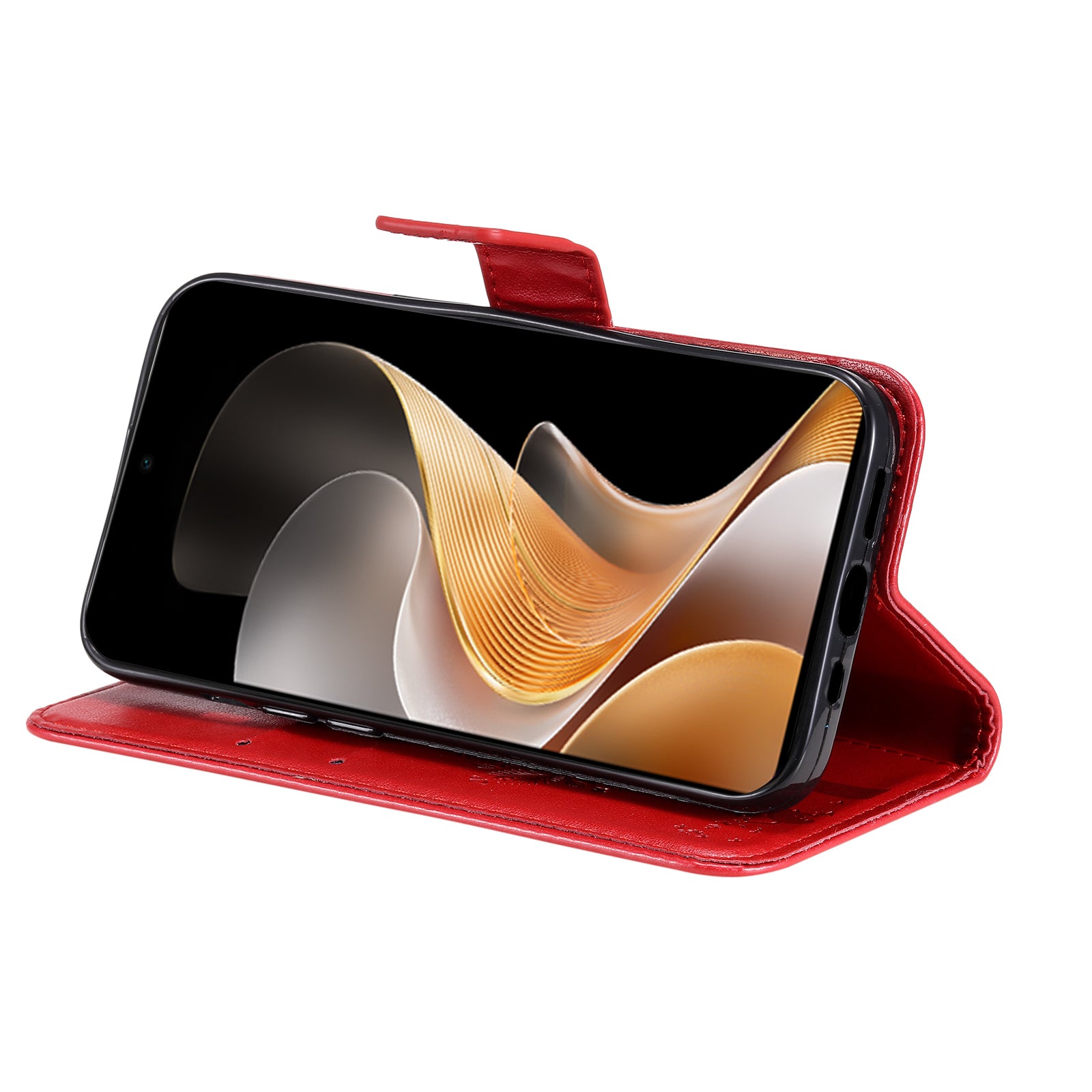 KT Imprinting Flower Series-3 For vivo S19 5G / V40 5G Leather Phone Case Cat Tree Pattern - Red