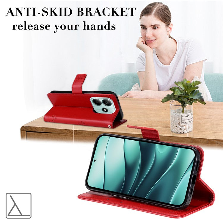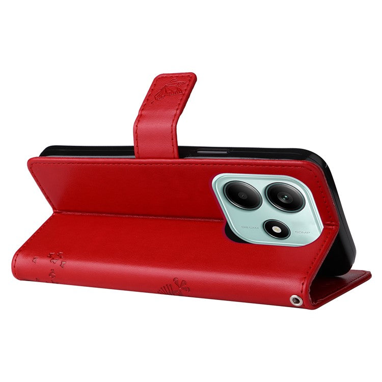 KT Imprinting Flower Series-3 For Xiaomi Redmi Note 14 5G Case Cat Tree Pattern Flip Leather Phone Cover - Red