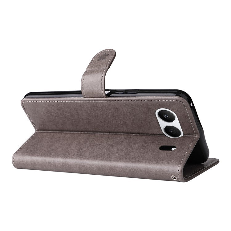 KT Imprinting Flower Series-4 For OnePlus Nord 4 Case Cat Bee Pattern Flip Leather Phone Cover - Grey