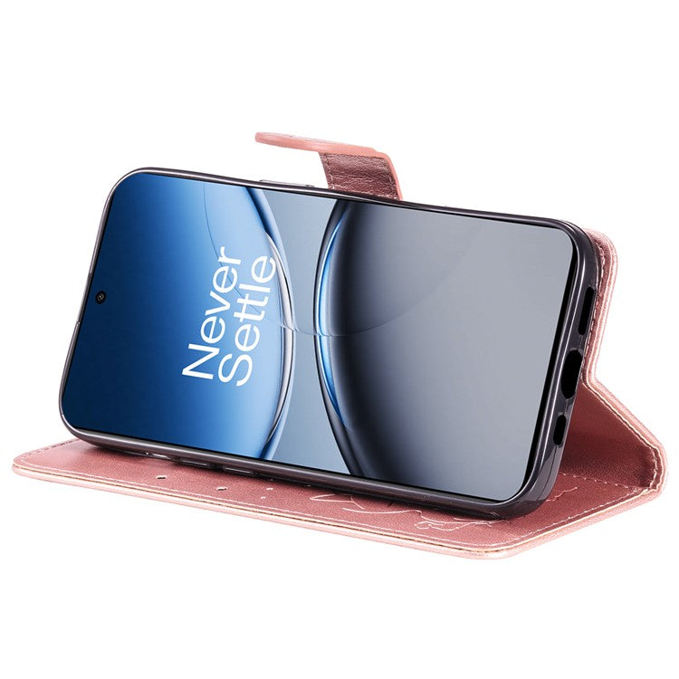 KT Imprinting Flower Series-4 For OnePlus Nord 4 Case Cat Bee Pattern Flip Leather Phone Cover - Rose Gold