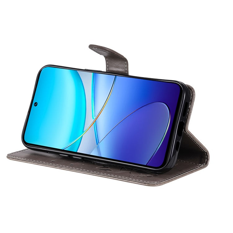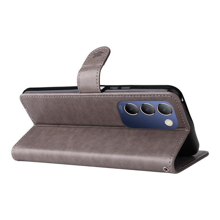 KT Imprinting Flower Series-4 For vivo V40 SE 5G / Y100 5G (Indonesia) / Y200e 5G / V30 Lite 5G (India) Leather Phone Case - Grey